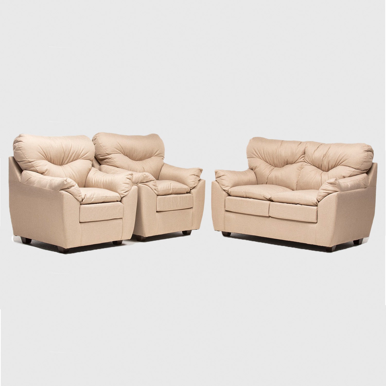 Versión compacta del juego Belén con un sofá de dos cuerpos y dos sillones. Tapizado en tela, su variedad de color permite adaptarlo a espacios más reducidos sin perder estilo.