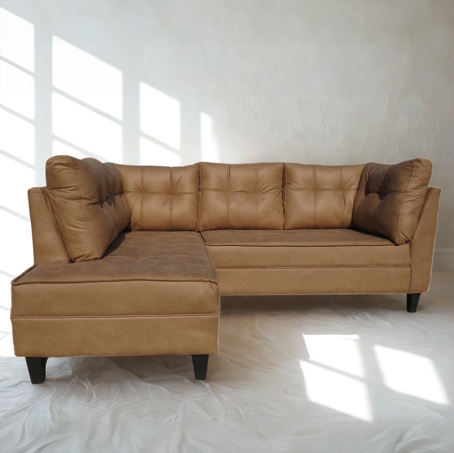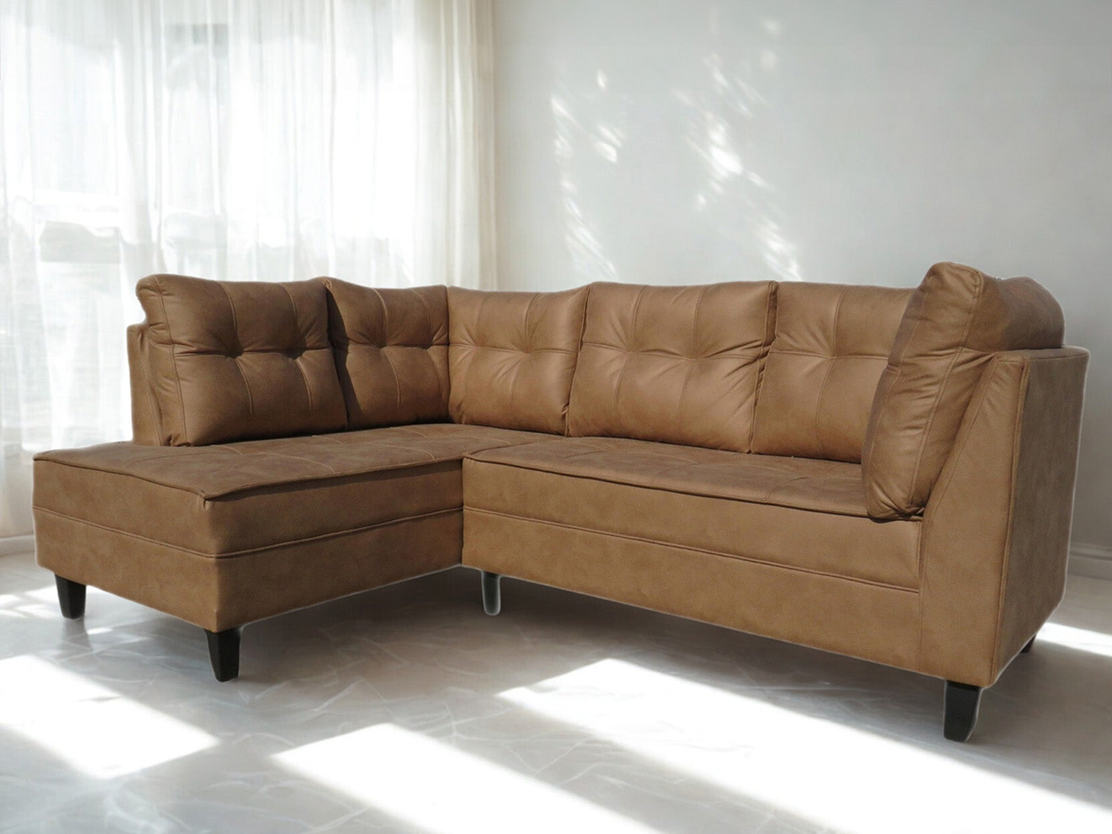 Este seccional de gran presencia realza cualquier ambiente con su estilo moderno y envolvente. Tapizado en PU y con un amplio diseño en L, el tono caramelo le aporta carácter y calidez a espacios familiares o sociales.